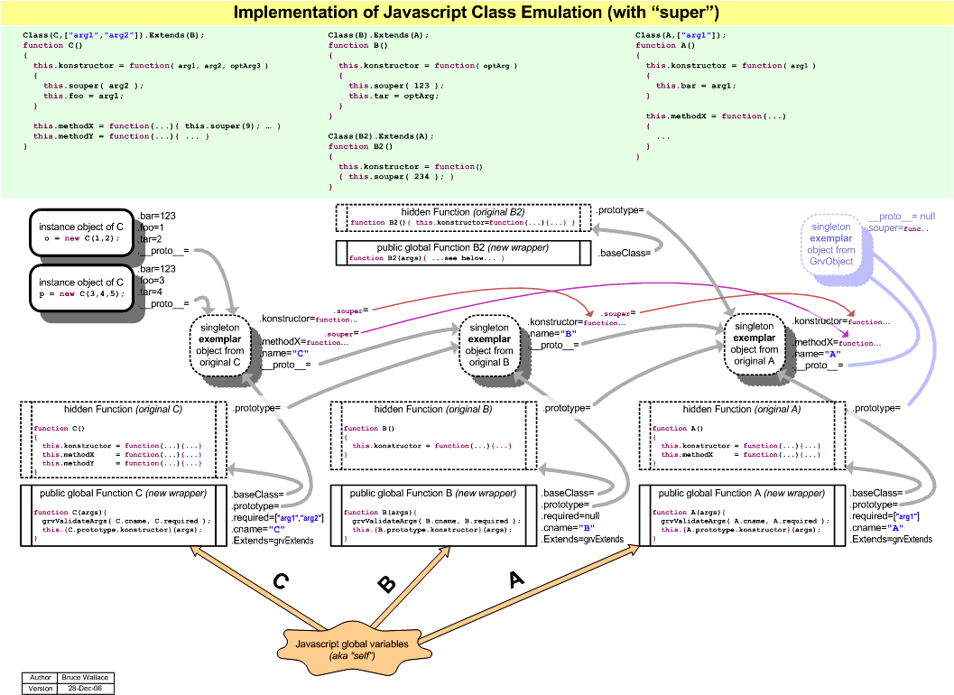 Bruce Wallace has developed a technique to emulate Java-like classes that works around the limitations of JavaScript. This page contains links to example files for articles in the AJAX from Scratch series.
